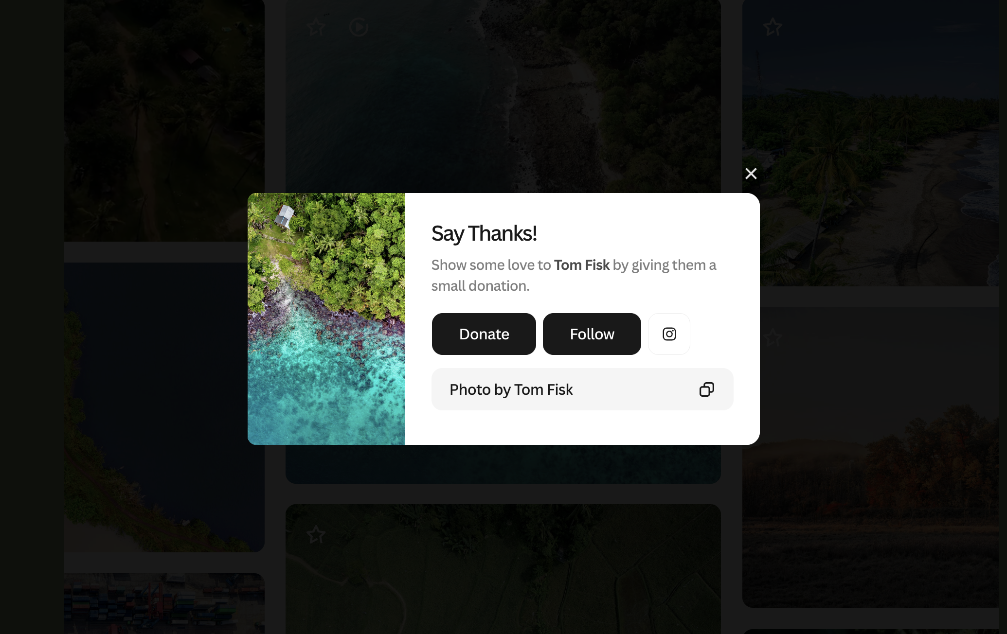 If you miss this window or decide you want to thank the creator at a later time, you can visit their Pexels profile to donate, follow, or even send them a nice "thank you" message.
