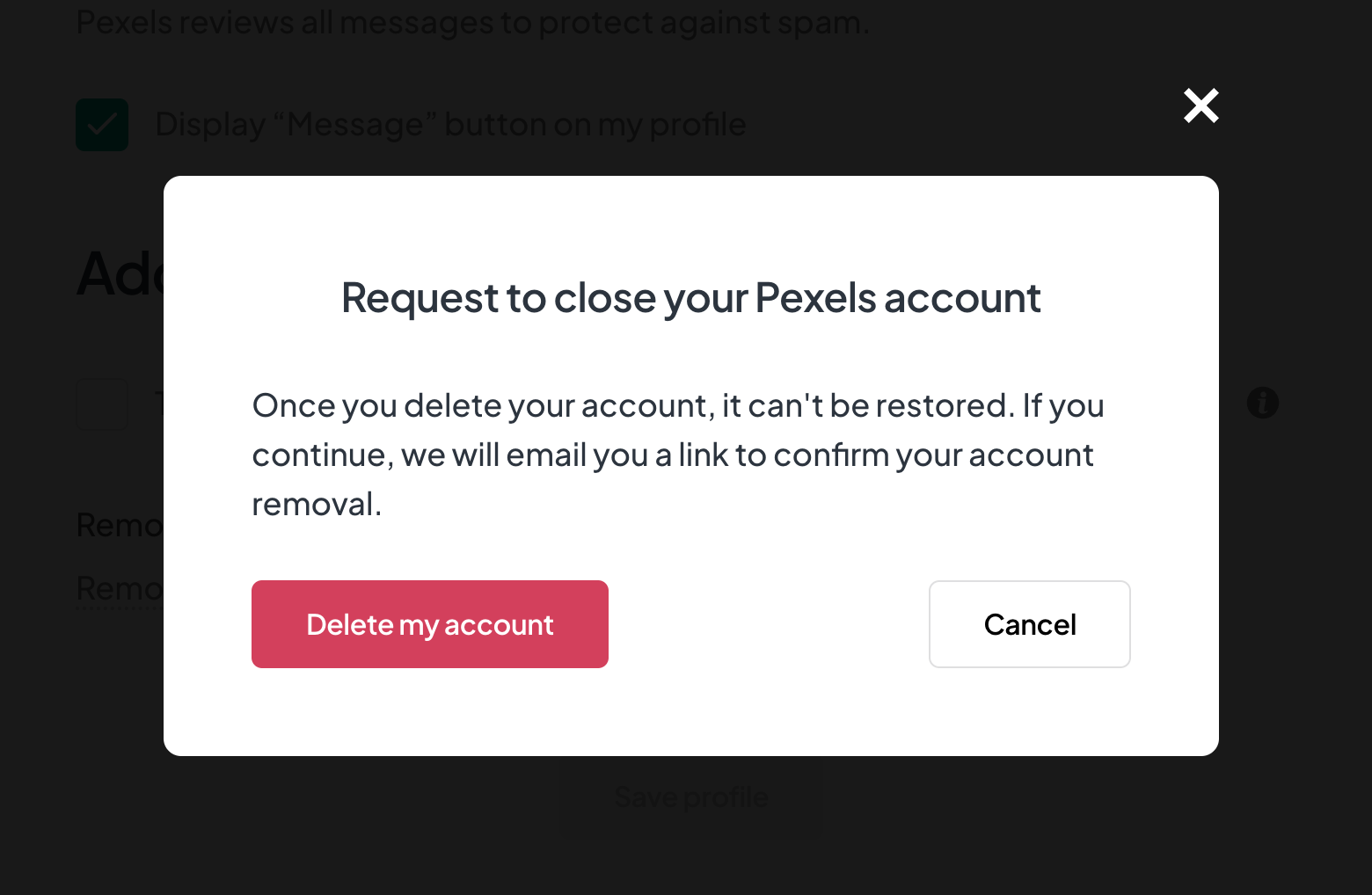 Observação: Ao encerrar sua conta, todas as suas fotos e todos os dados associados serão excluídos, incluindo suas estatísticas, coleções, distintivos e seguidores.