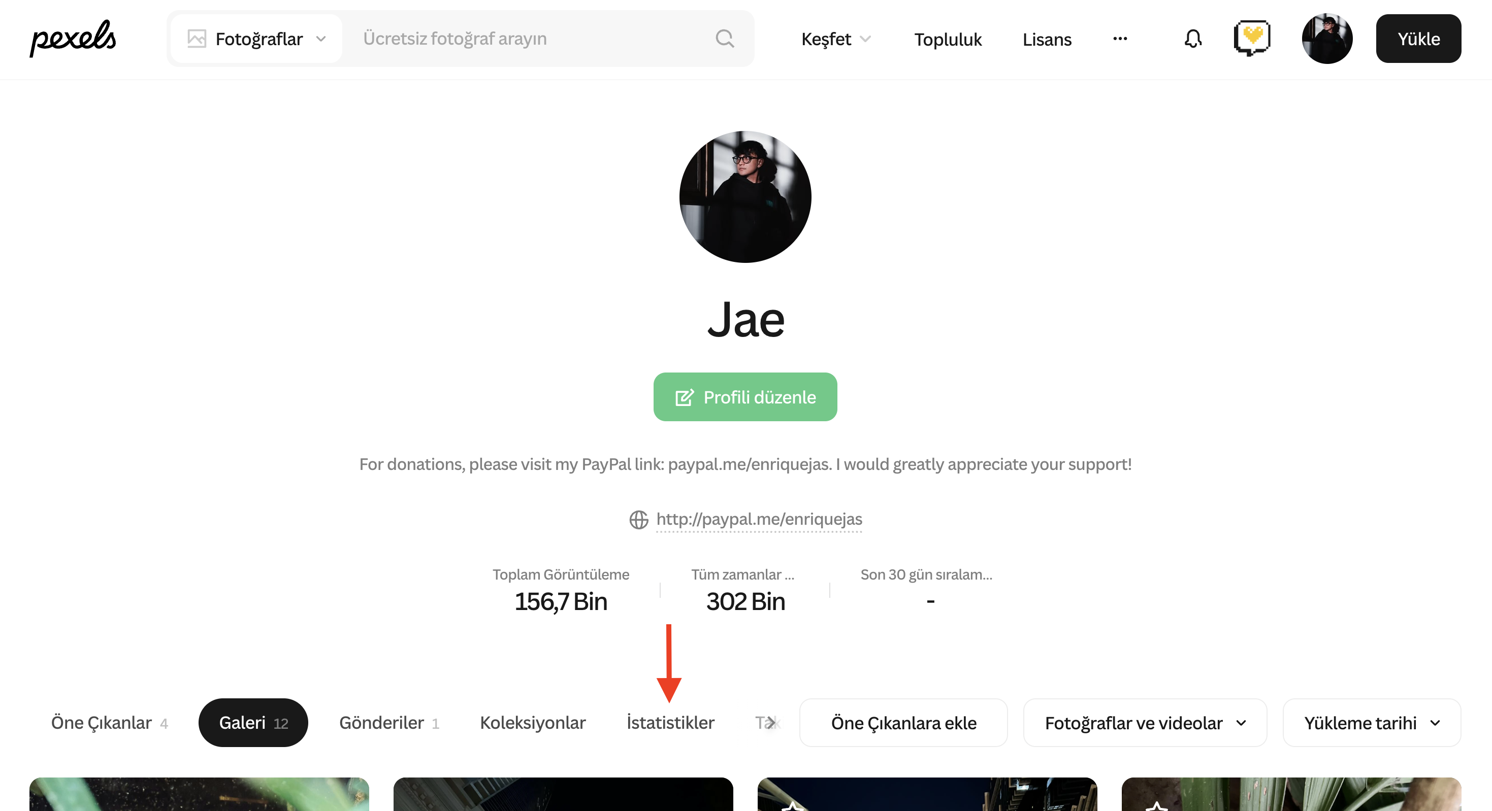 Bir Pexels fotoğrafçısı olarak istatistiklerinizin artmasını görmek oldukça heyecan vericidir. Profil sayfanızdaki Stats bölümüne giderek istatistiklerinizi görüntüleyebilirsiniz.