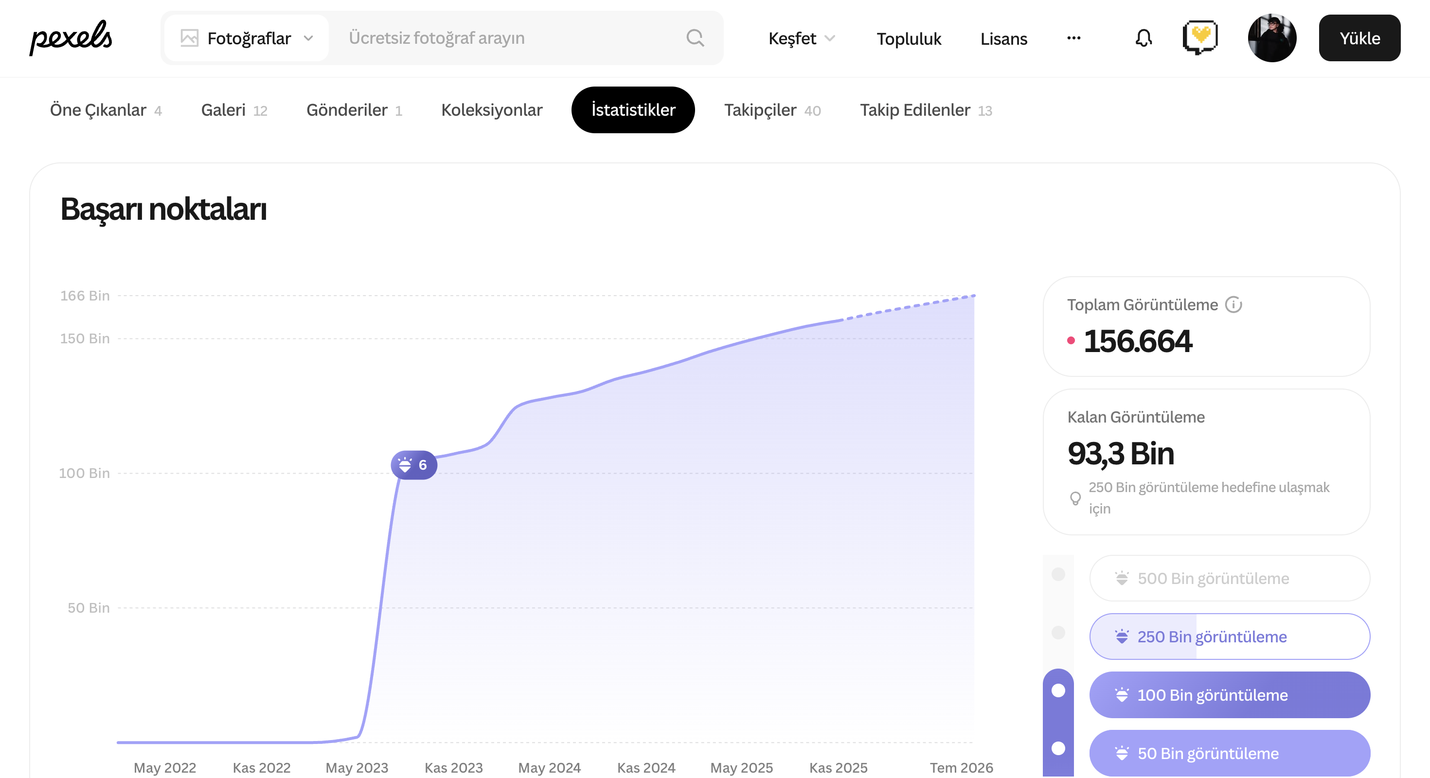 Photo views (Görüntülemeler): Fotoğrafınızın arama sonuçlarında veya API ortaklarımız aracılığıyla kaç kez gösterildiği.