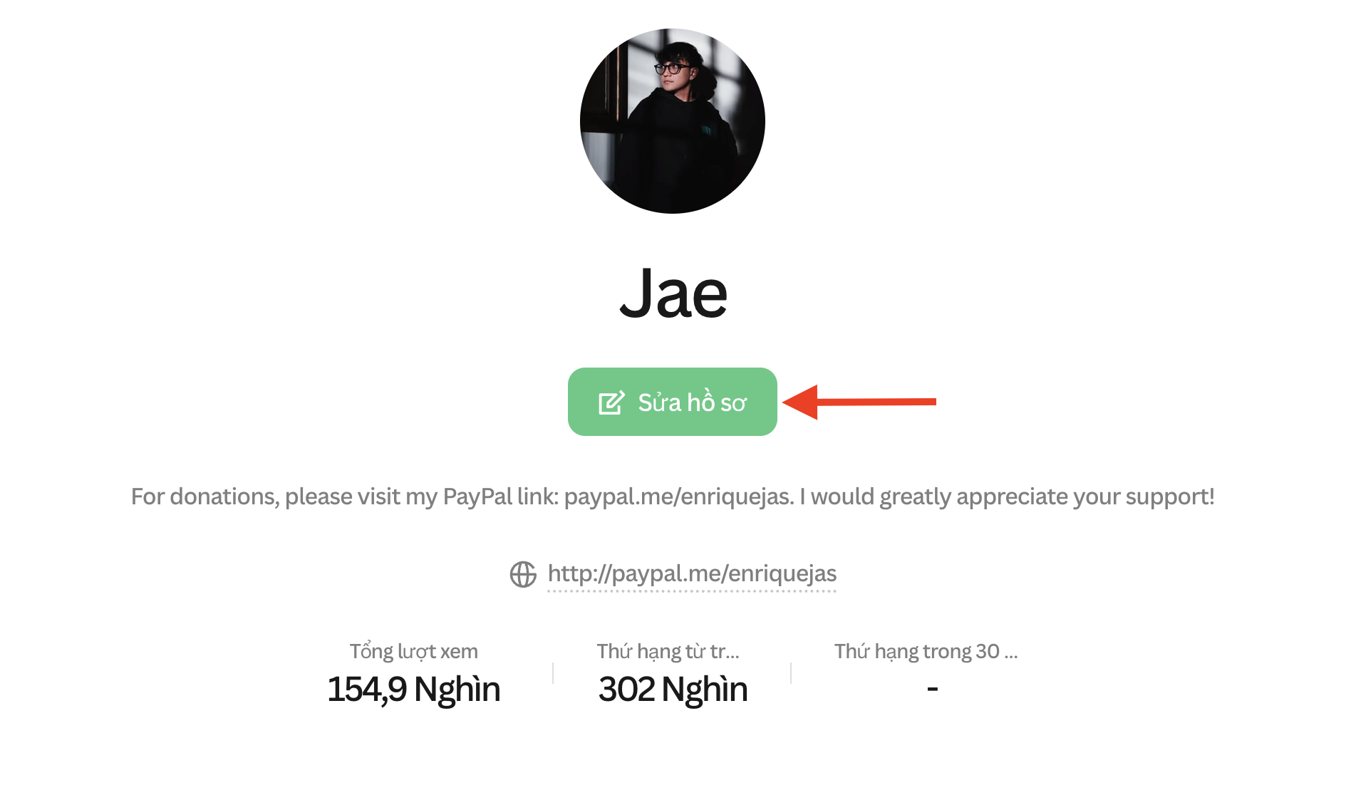 Nhấp vào nút Chỉnh sửa hồ sơ trên trang hồ sơ của bạn, nằm bên dưới ảnh đại diện.